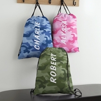 Product DescriptionCarry your little essentials in style no matter where you're headed! This awesome camouflage drawstring bag is perfect for school, adventures, playdates and beyond.