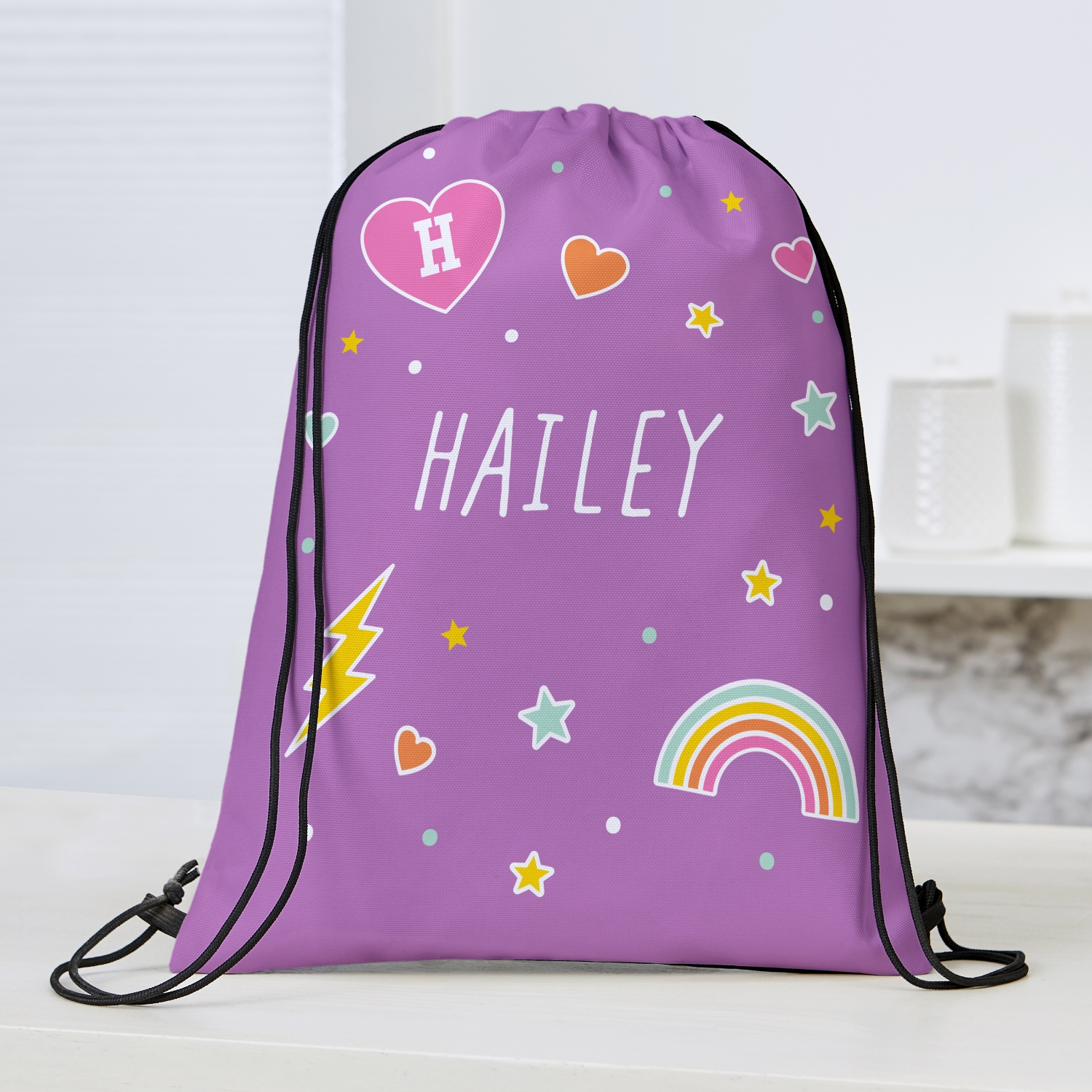 Product DescriptionCarry the fun all the time! This adorable drawstring bag is bursting with love and great for outings of all sorts.