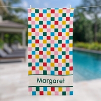 Product DescriptionBring bold vibes to the beach with this fun towel. Soft and snuggly, its colorful checkerboard design turns every sandy day into a playful splash of color.