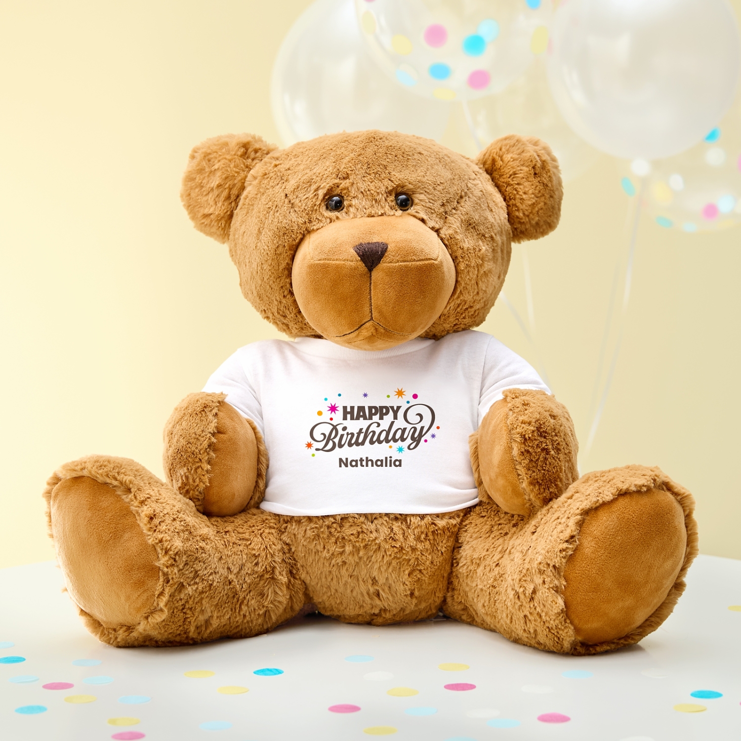 Product DescriptionMeet the ultimate birthday bear companion! From a first birthday to a sweet sixteen or any milestone in between, this cuddly bear is ready to make the celebration extra special.