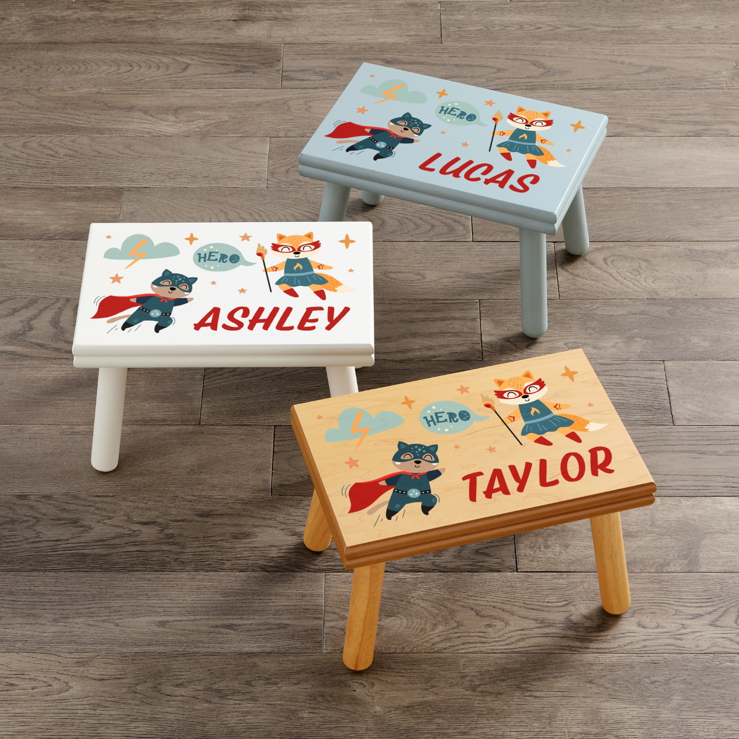 Soaring high! This step stool gives little heroes a lift whenever they need to battle germs at the sink.