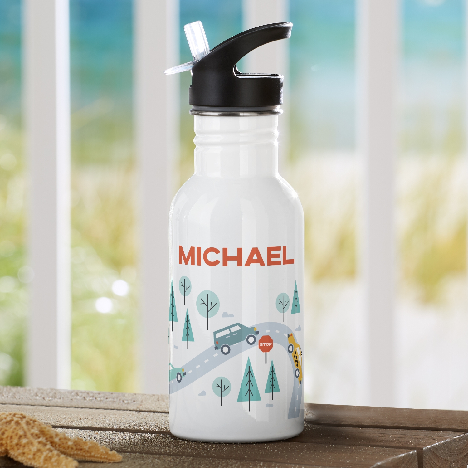 Fuel up and stay refreshed on the go! This water bottle is perfect for little road warriors who love adventure and to hydrate in style.