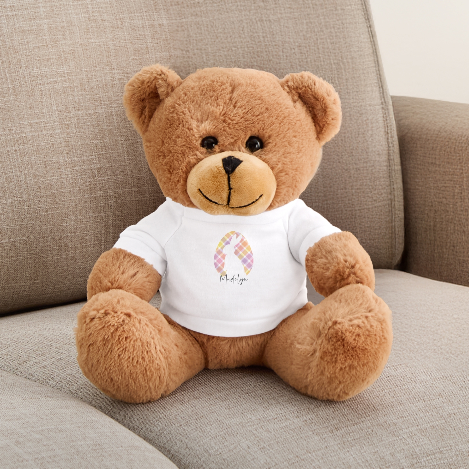Product DescriptionCuddle up with this festive bear dressed in plaid. Soft, playful and full of charm, it’s ready to deliver hugs and spread Easter joy to anyone lucky enough to meet it.